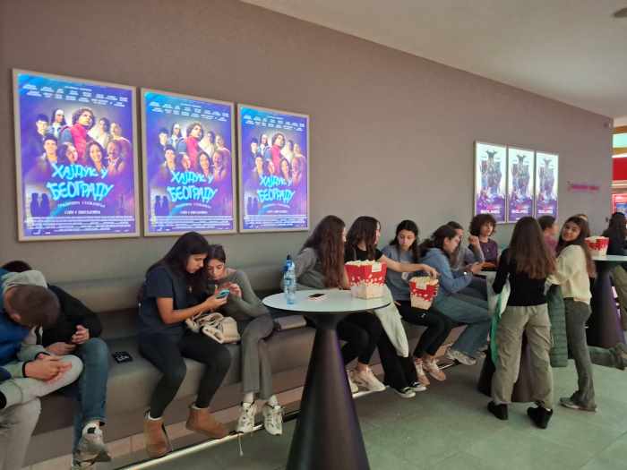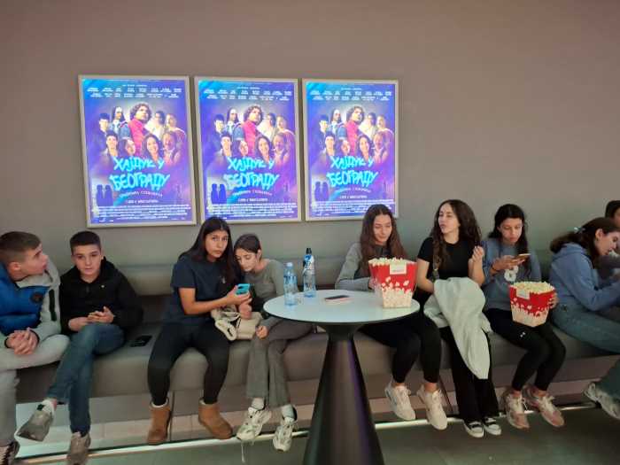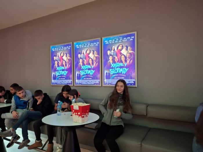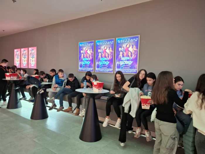 Ученици седмих разреда уживали су у пројекцији филма Хајдук у Београду у пратњи наставнице српског језика Јелене Баста.